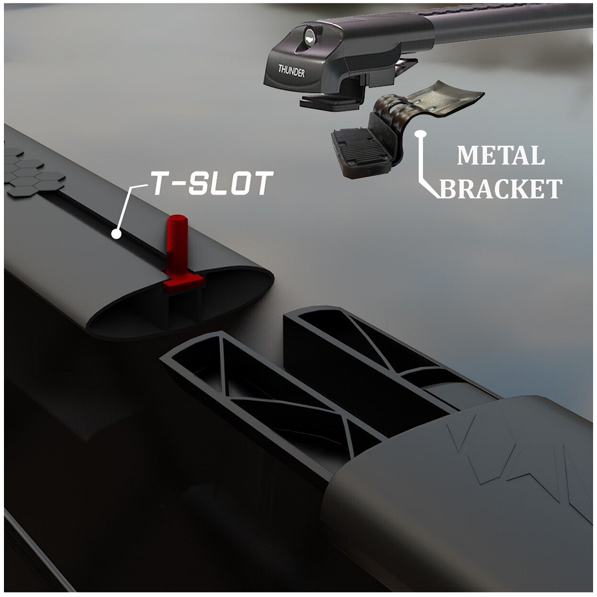 ➡️ Nowa, niska linia bagażników Thunder TRX1 montowanych między relingi klasyczne.